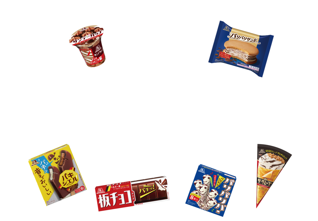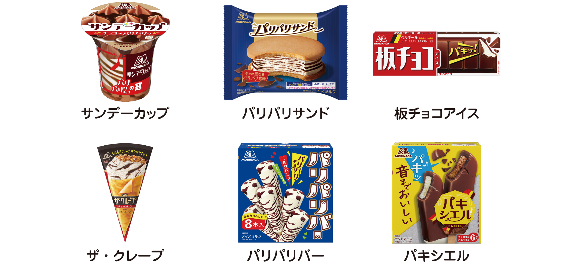 ・パキシエル ・パリパリバー ・ザ・クレープ ・板チョコアイス ・サンデーカップ ・パリパリサンド